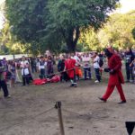 Como o tempo ajudou e não estava chovendo, conseguimos curtir a feira sem tropeços. Nos 2 dias de evento foi grande a adesão de bastante pessoas, desde cosplays até famílias que usavam trajes medievais, sem se importar em nada com os olhares curiosos dos visitantes habituais da Quinta. No local havia uma arena onde um grupo de pessoas lutavam com armas emborrachadas, bem divertida para os pequenos e para os grandes com espírito de criança, como esse que vos fala. Ir caracterizado com roupas medievais rendeu 10% de desconto em diversas atividades e stands!